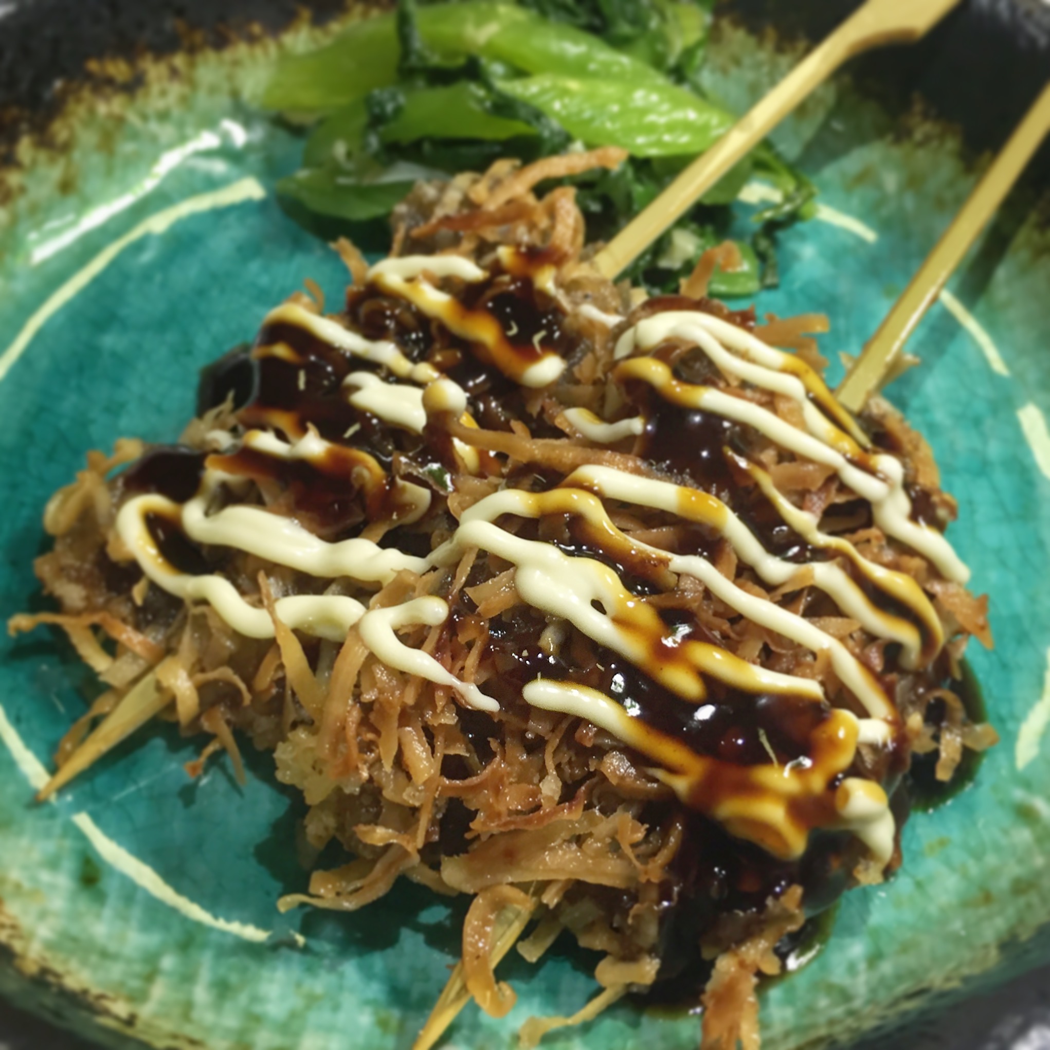 The result (pictured above) has some scrumptious Japanese mayo. Japanese mayo doesn’t have sugar so it’s just salt, vegetable oil, egg, and vinegar. In addition, some Katsu sauce completed the toppings.